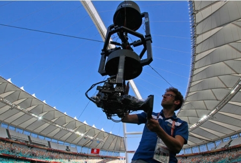 کنترل دوربین های هوایی در استادیوم فوتبال شهر دوربان در آفریقای جنوبی