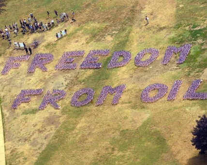 نوشتن شعار " آزادی از نفت " در واشنگتن آمریکا با نصب هزاران پرچم آمریکا بر روی زمین از سوی طرفداران محیط زیست و در اعتراض به مماشات دولت اوباما با آلودگی نفتی خلیج مکزیک و شرکت بی پی