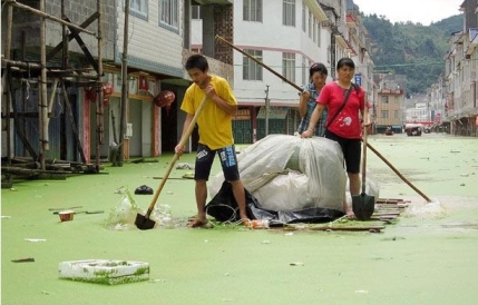 در شهرهای سیلزده چین باید با قایق و پارو حرکت کرد