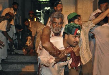 انتقال زخمی های حمله تروریستی به عبادتگاه صوفیان در لاهور پاکستان