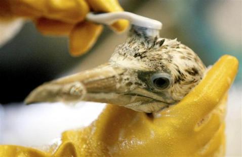 شستشوی پرندگان مهاجرآلوده شده به نفت در خلیج مکزیک در آمریکا