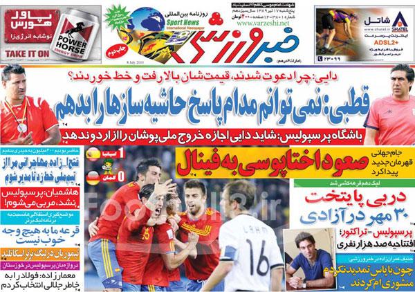 عناوين روزنامه هاي ورزشي امروز (عكس)