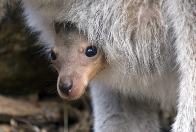یک کانگروی 5 ماهه در کیسه شکمی مادرش در باغ وحشی در شهر سیدنی استرالیا