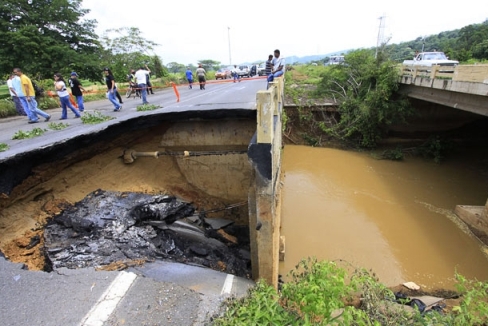 نشست زمین در بزرگراهی در ونزوئلا. در این حادثه یک نفر کشته شد