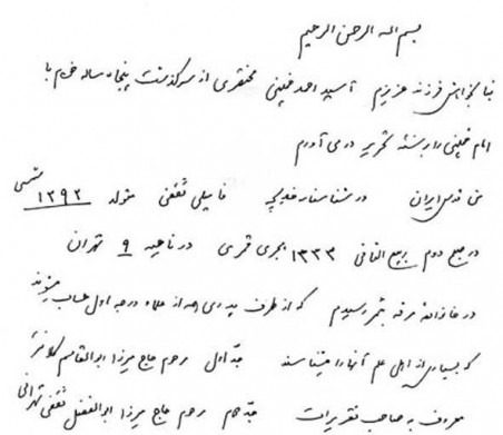 دستخط همسر امام(ره) بانو خدیجه ثقفی