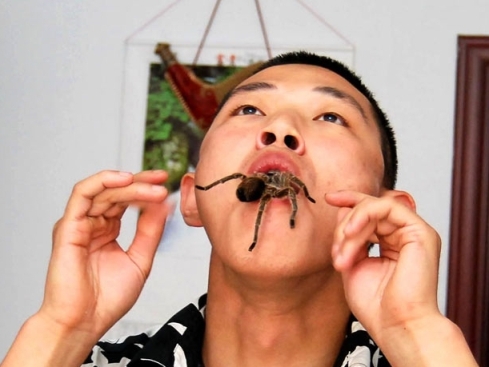 یک جوان 21 ساله چینی انواع حیوانات سمی و خطرناک را به درون دهان خود فروبرده و در می آورد