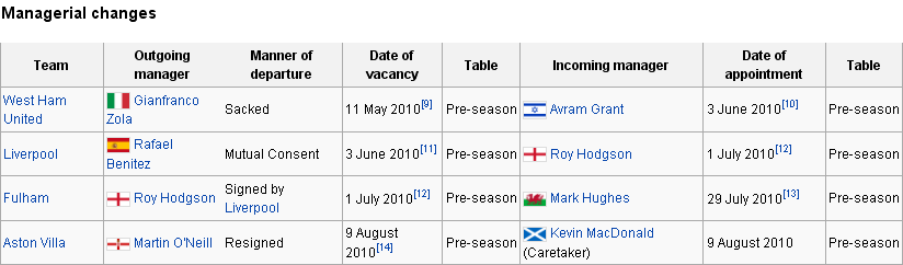 ساندرلند 2-2 بیرمنگام سیتی، 3 کارت برای ساندرلند (Kieran Richardson, Lee Cattermole, Darren Bent) و 3 کارت برای بیرمنگام سیتی (Stephen Carr, Craig Gardner, Roger Johnson)، در 14 آگوست 2010