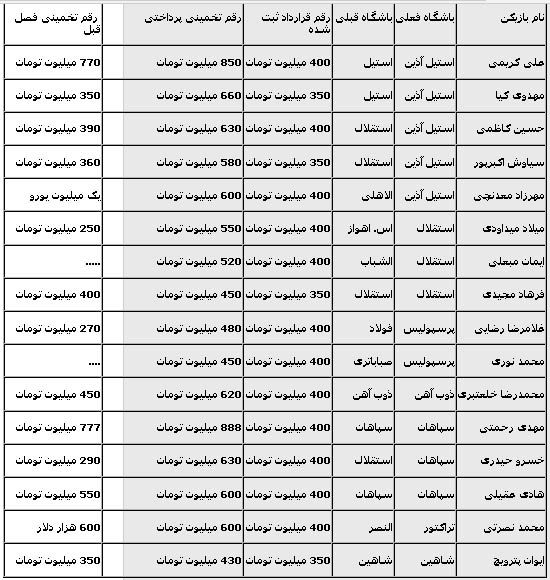 مبلغ اصلي قرارداد ستارگان ليگ برتر ايران(عكس)