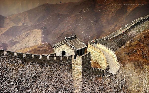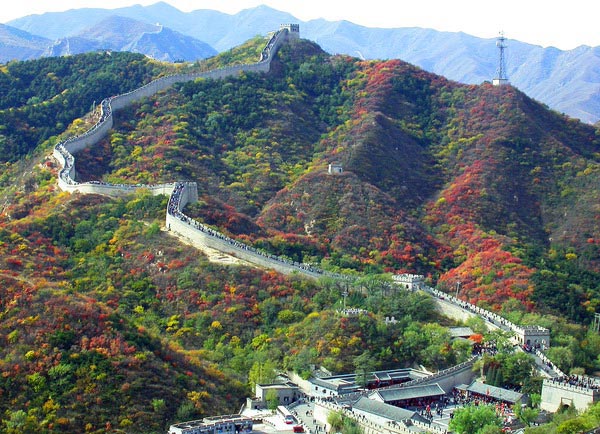 6 - دیوار بزرگ چینیکی از عجایب هفتگانه جهان شمرده می شود ، در جهان به لحاظ زمان ساخت طولانی ترین و بزرگترین مهندسی تدافعی نظامی در قدیم است و همچنین این دیوار تنها پدیده انسانی است که از فضا قابل روءیت می باشد. این دیوار در نقشه جغرافیایی چین ۷۰۰۰ کیلومتر امتداد یافته است.این اثر سال ۱۹۸۷ در "فهرست میراث جهانی" ثبت شد. تاریخ ساخت دیوار چین به قرن ۹ قبل از میلاد باز می گردد. حکومت وقت چین برای جلوگیری از حملات ملیت های شمالی ، برجهای آتش برای خبر رسانی و یا قلعههای مرزی برای حصول اطلاعات دشمن را در ارتباط با دیوار و بر روی آن ایجاد کرد . در دوره حکمرانی سلسلههای بهار و پاییز و کشورهای جنگجو ،میان دوک ها جنگ بر پا شد و کشورها با استفاده از کوههای مرزی به ساخت دیوار پرداختند تا سال ۲۲۱ قبل از میلاد ،امپراتور چین شی خوان پس از به وحدت رساندن چین ، دیوارهای دوک ها را به هم متصل کرد که به صورت دیوار بزرگ در مرزهای شمالی بر روی کوهها در آمد . او می خواست با این کار از حملات دشمن به مراتع شمالی جلوگیری کند.