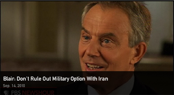 تونی بلر نخست وزیر اسبق بریتانیا و نماینده گروه چهارجانبه برای صلح خاورمیانه در گفتگوی سه شنبه شب خود با " مارگارت وارنر " مجری برنامه " news hour " ( ساعت خبر ) شبکه " پی بی اس " بار دیگر از سخنان خود درباره ضرورت جلوگیری از تسلیح اتمی ایران دفاع کرد.