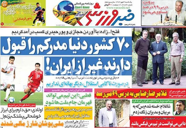 عناوين روزنامه هاي ورزشي امروز (عكس)