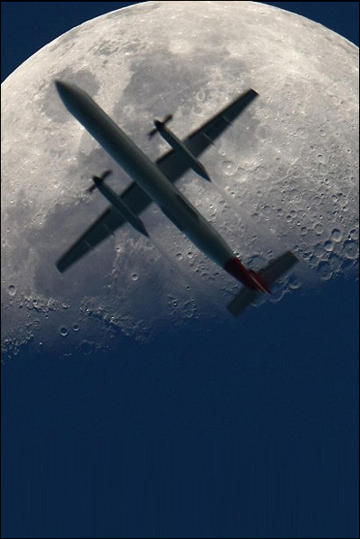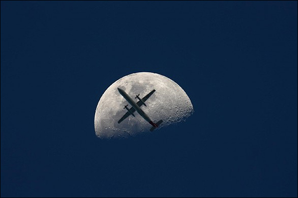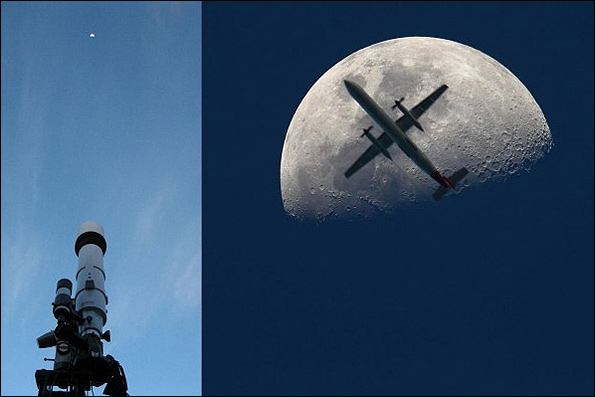 این عکاس خوش ذوق با استفاده از دوربین تلسکوپی ردیاب ماه و زمان نوردهی یک/ دویست و پنجاهم ثانیه (1/250th) موفق شد از لحظه عبور این هواپیما از مقابل ماه عکسبرداری کند.