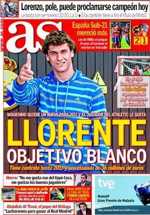 مورینیو برای 2011 یک مهاجم می خواهد و به مهاجم اتلتیک علاقمند است