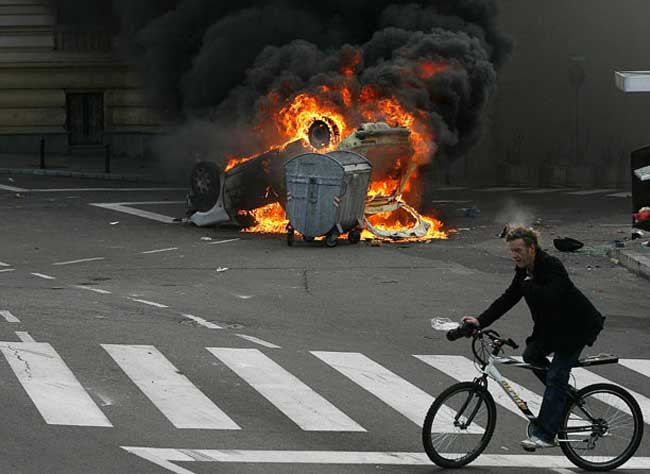 آتش گرفتن خودروهای پلیس در درگیریهای شدید بین موافقان و مخالفان همجنسگرایی در بلگراد پایتخت صربستان