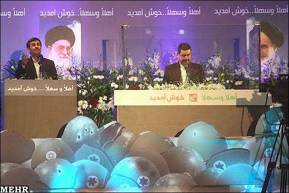 محمود احمدی نژاد شب گذشته در مراسمی در جنوب بیروت، از قرار گرفتن در محل حفاظت شده خودداری کرد.