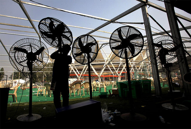 باز کردن پنکه های استادیوم جواهر لعل نهرو پس از پایان رقابت های کشورهای مشترک المنافع در دهلی نو هند