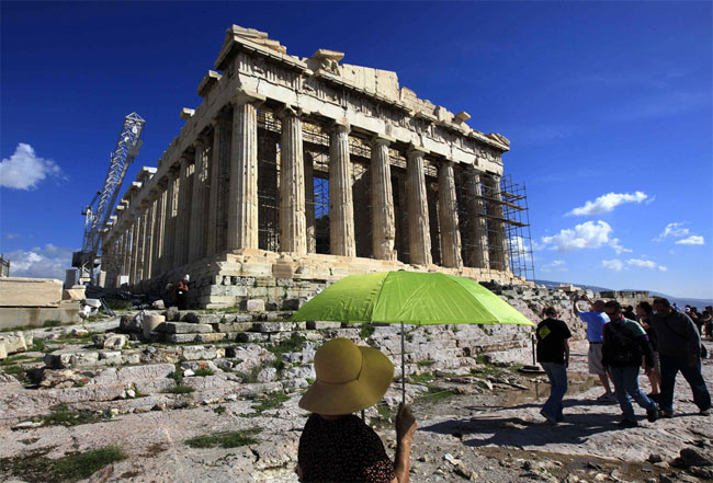 بازدید توریست ها از بنای آکروپلیس در یونان