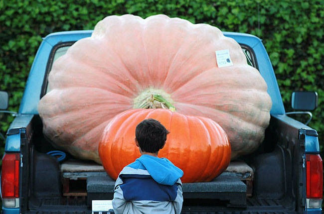 حمل یک کدو تنبل بزرگ برای شرکت در 37 امین فستیوال بزرگ ترین کدوتنبل در کالیفرنیا آمریکا