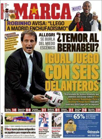 آلگری ترس از استادیوم را مسخره کرد :" ترس از برنابئو ؟ همان بازی خود را با شش عنصر تهاجمی انجام خواهیم داد"