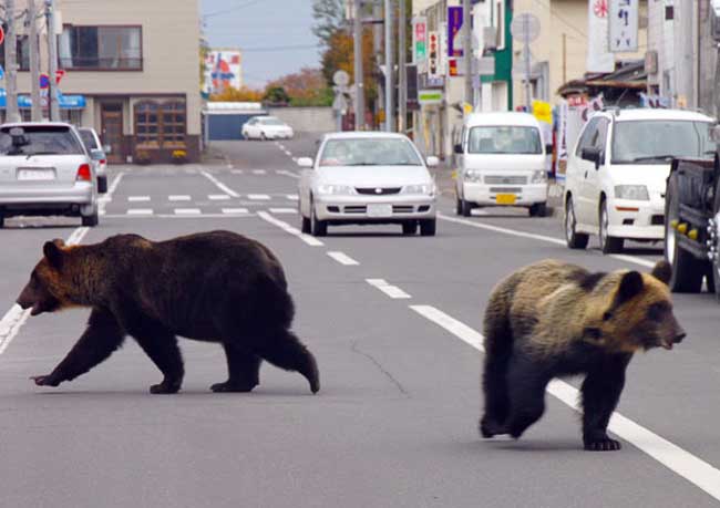 هجوم دو خرس از جنگل به خیابان های شهر هوکاییدو در شمال ژاپن