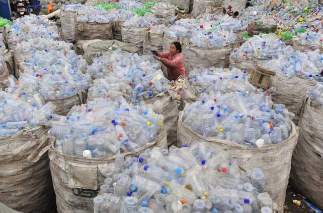 یک کارخانه بازیافت بطری های پلاستیکی در شن یانگ چین