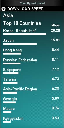 در آسیا - اقیانوسیه اما اوضاع اینترنت و کاربرانش رویایی سپری می شود. کره جنوبی با ۱۲۰۲۱، هنگ کنگ با ۹۰۱۰ و ژاپن نیز با ۷۸۶۳ کیلوبیت بر ثانیه بهترین میانگین های این منطقه و البته دنیا را دارند.