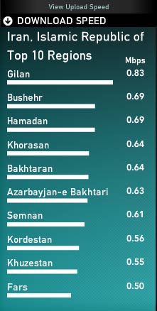 طبق آماری که Speedtest.net از میلیون ها تست ماهیانه کاربرانش جمع آوری می کند، ایران ۱۷۶ مین کشور از لحاظ سرعت بالای دانلود است. پایین تر از ایران تنها ۸ کشور دیگر دیده می شوند؛ جمهوری مالاوی، جزیره ی موریس، جمهوری وانواتو، کامرون، بولیوی، نپال، زیمباوه و زامبیا.