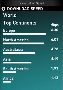 در قاره ی اروپا، بالاترین میانگین سرعت، با ۶۱۸۱ کیلوبیت بر ثانیه، متعلق به سوئد است. پس از سوئد، هلند با ۵۹۹۲ و جمهوری چک با ۵۴۸۲ کیلوبیت بر ثانیه دارای بالاترین میانگین سرعت هستند.