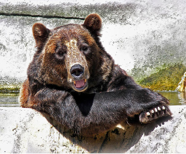 فیگور یک خرس برای توریست های عکاس در باغ وحشی در میشیگان آمریکا