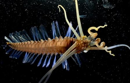 به گزارش خبر آنلاین به نقل از دیسکاوری، محققین موفق شدند موجود بندپای روحمانندی را در عمیقترین دسترسیهای اقیانوس بین اندونزی و فیلیپین کشف کنند. این موجود بندبند شبیه کرم یا شاید بهتر است بگویم هزارپا است. طول آن به بیش از 9.4 سانتیمتر میرسد که در نوع خودش خیلی هم بزرگ است. این موجود با استفاده از دو ردیف زایدههای پارومانند بسیار ظریف که دو طرف بدنش قرار گرفتهاند، شنا میکند. حرکت پشت سر هم این زایدهها درست مانند ریختن پشت سر هم یک ردیف دومینو است.