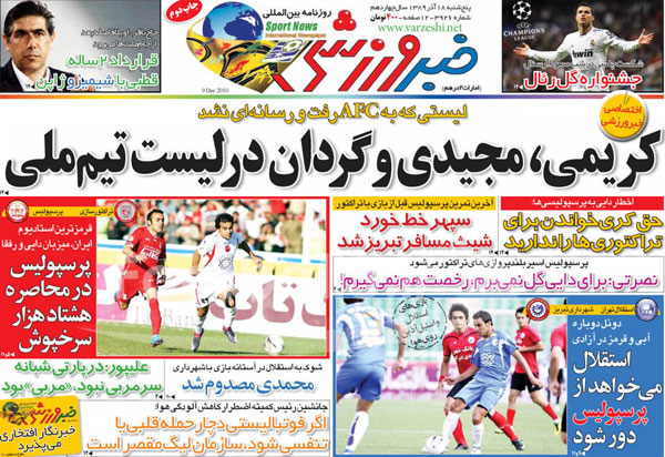 صفحه نخست روزنامه هاي ورزشي امروز (عكس)