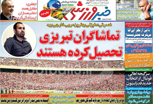 صفحه نخست روزنامه هاي ورزشي امروز (عكس)