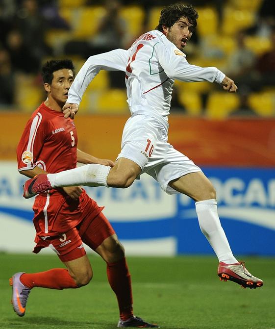 کريم انصاري فرد مهاجم تيم ملي ايران روي سانتر پژمان نوري با اين ضربه بغل پاي تماشايي به زاويه راست دروازه کره شمالي کار رابه سود ايران تمام کرد