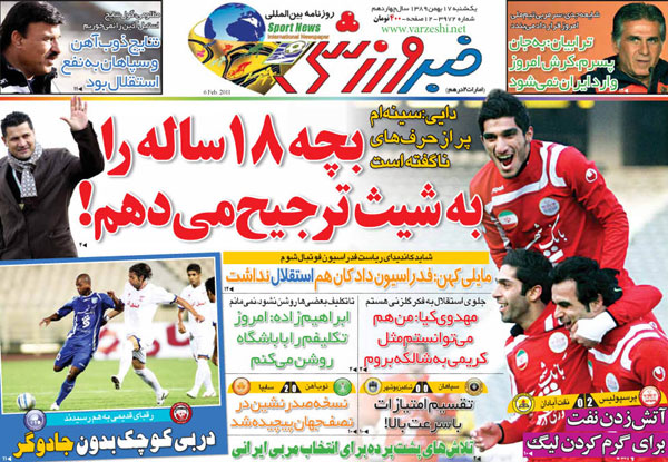 صفحه نخست روزنامه هاي ورزشي 17 بهمن 89 (عكس)