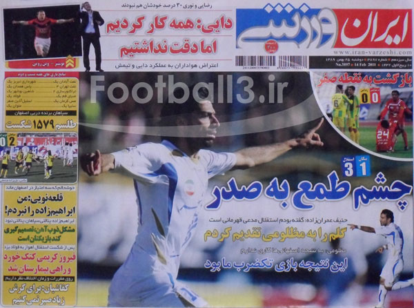 صفحه نخست روزنامه هاي ورزشي 25 بهمن (عكس)