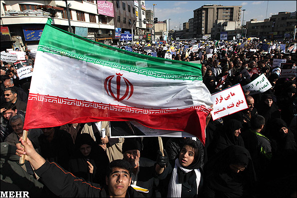 راهپیمایی مردم تهران در اعتراض به حوادث 25 بهمن(تصویری)