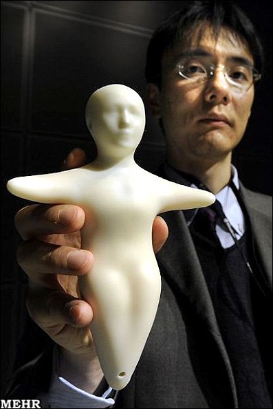 این تلفن همراه انسان نما کمی بزرگتر از کف دست انسان است، بلندگو در سر این آدمک نصب شده و دیود نوری کم قدرتی در قفسه سینه عروسک قرار گرفته است تا زمانی که فرد در حال مکالمه با گوشی تلفن همراه است، چراغ به رنگ آبی و در زمانی که از تلفن استفاده نمی شود به رنگ قرمز می درخشد.
