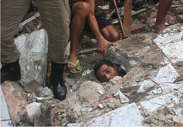 تلاش برای نجات یک جوان از آوار ناشی از سیلاب در ریودوژانیروی برزیل