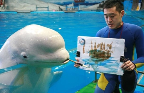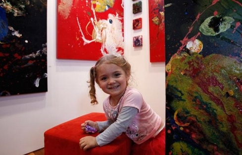 نقاش سه ساله استرالیایی در نمایشگاه خود در ملبورن. وی یک تابلوی خود را به قیمت 28 هزار دلا فروخت