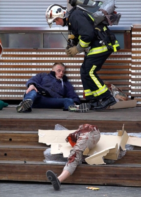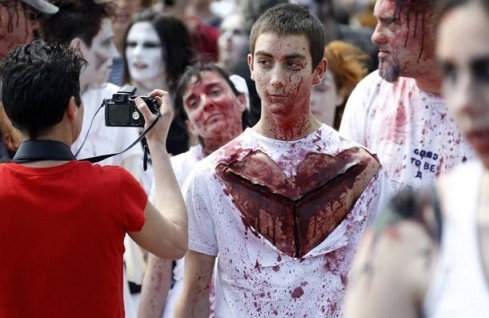 حاشیه جشنواره فیلم کن. توریست ها با خون الود کردن صورت و لباس خود عکس می گیرند