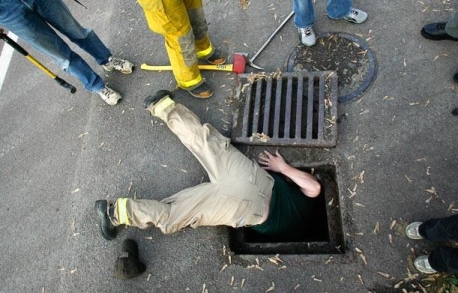 تلاش امدادگران آتش نشانی در شهری در پنسیلوانیای آمریکا برای بیرون کشیدن یک جوجه اردک از سوراخ فاضلاب شهر