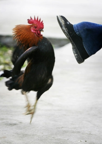این خروس در استان هونان چین پس از اینکه یکی از جوجه هایش مرده است به هر بنی بشری که می بیند این گونه حمله می برد