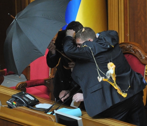 تصاویری حیرات انگیز از درگیری در پارلمان اوکراین بر سر تصویب لایحه تمدید نیروهای دریایی روسیه در بندری متعلق به این کشور در دریای سیاه