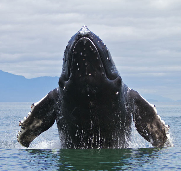 بیرون زدن یک وال عظیم الجثه از آب در آلاسکا