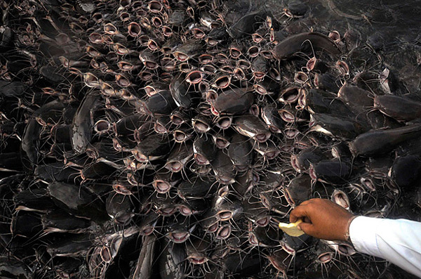 گربه ماهی های گرسنه تلمبار شده روی هم ( هند)
