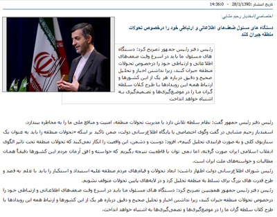 ساعت 23:55 یکشنبه شب - پایگاه اطلاع رسانی دولت هنوز خبر ابقای مصلحی را منتشر نکرده است.
