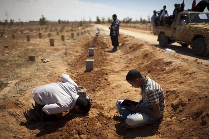 قبور كشته شدگان در جنگ با نيروهاي معمر قذافي در شهر بنغازي ليبي