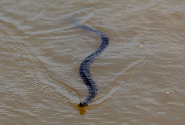 شناي يك مار در سيلاب آركانزاس آمريكا