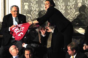 نیروهای امنیتی حاضر در کنگره آمریکا به سرعت این زن را دستگیر و از کنگره خارج کردند.