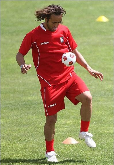 علی کریمی در تمرین تیم ملی فوتبال با توپ هندبالی که داشت شروع به روپایی زدن کرد.